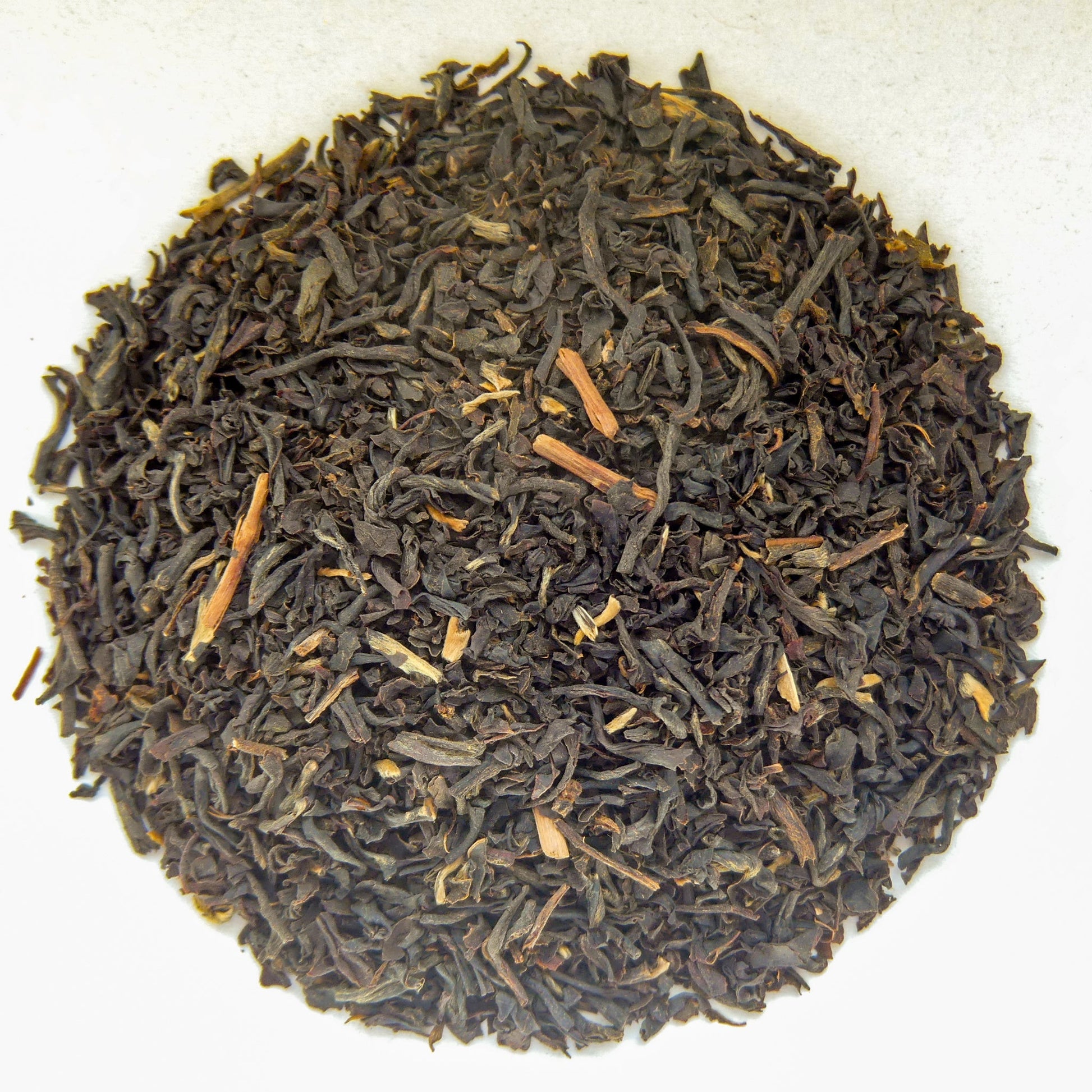 Kenia Marinyn Schwarztee GFOP1 wächst in Äquatornähe auf etwa 2000 Metern Höhe. Seine fermentierten Blätter sind sehr dunkel mit helleren Spitzen. In der Tasse sieht er rötlich aus, er schmeckt kräftig mit fruchtig-blumiger Note und leicht pfeffrigen Untertönen.
